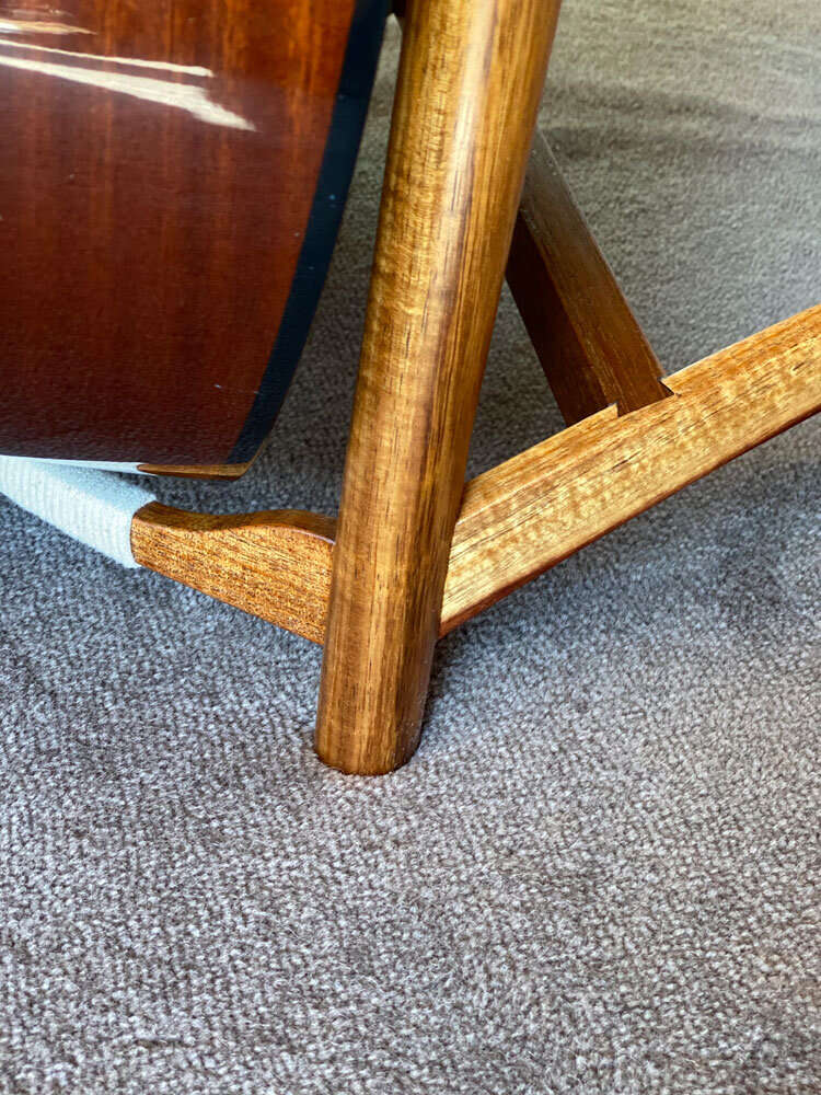 Guitar stool 29 Jul Written By Doug Waites Tasmanian Blackwood, kangaroo leather, natural chord. Sustainable nontoxic oil finish. View fullsize View fullsize View fullsize View fullsize Doug Waites